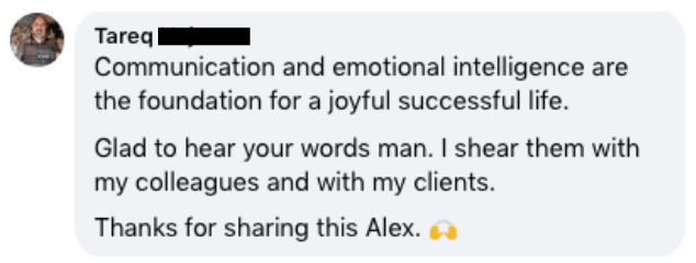 Not gonna lie, when I first connected with Alex I was feeling pretty down and frustrated. Kinda hopeless honestly. I wanted to improve my communication skills for both business and my personal life. I had limiting beliefs holding me back, like I wasn't worth of more success in my career.